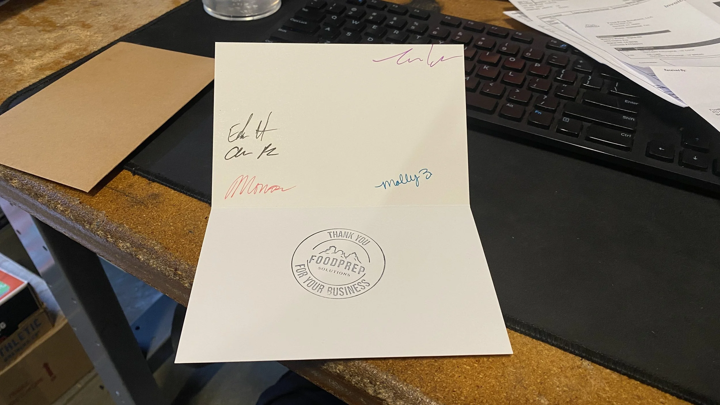 august 28 possible the laziest company thank you card ever, the envelope it came with had oil stains all over it